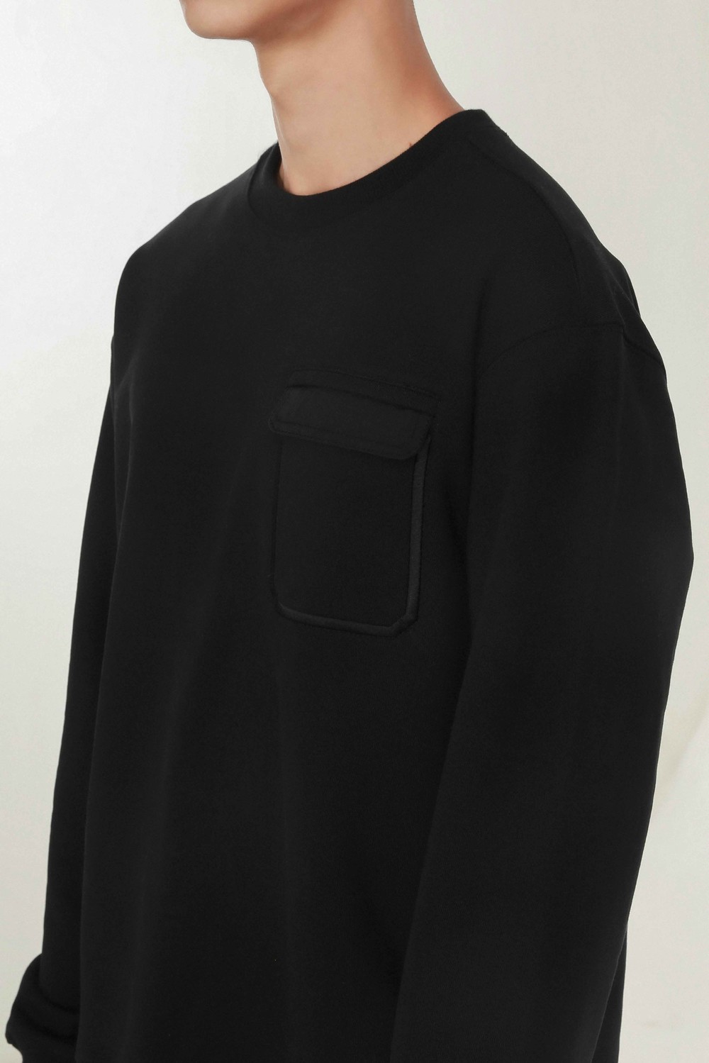 FLAP 자수 주머니 스웻 셔츠 (BLACK)