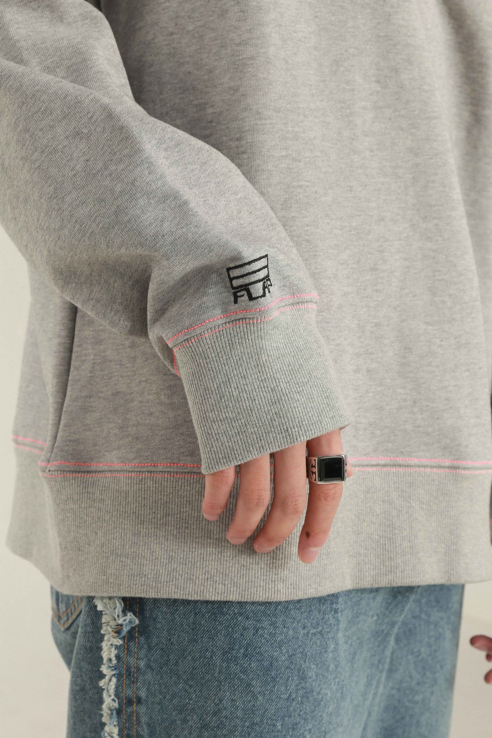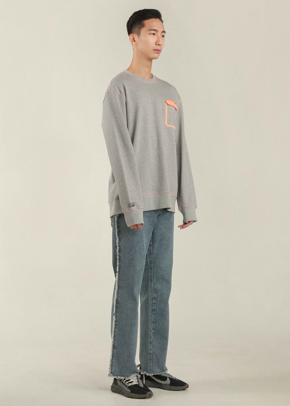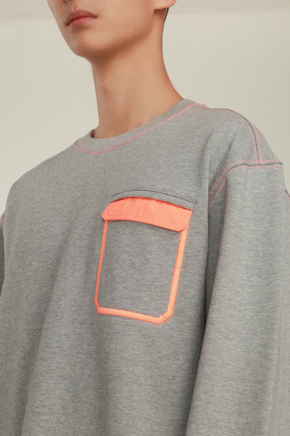 FLAP 자수 주머니 스웻 셔츠 (GRAY)